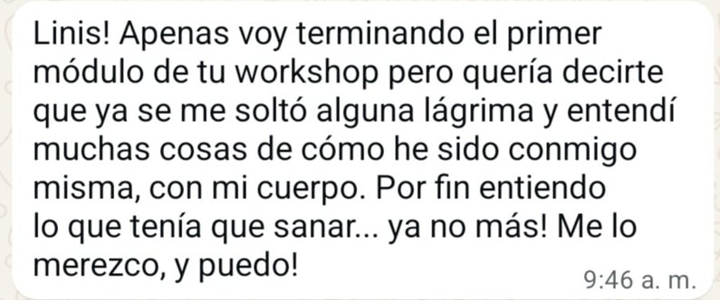 Es un workshop 100% online diseñado para mujeres que sienten que su cuerpo